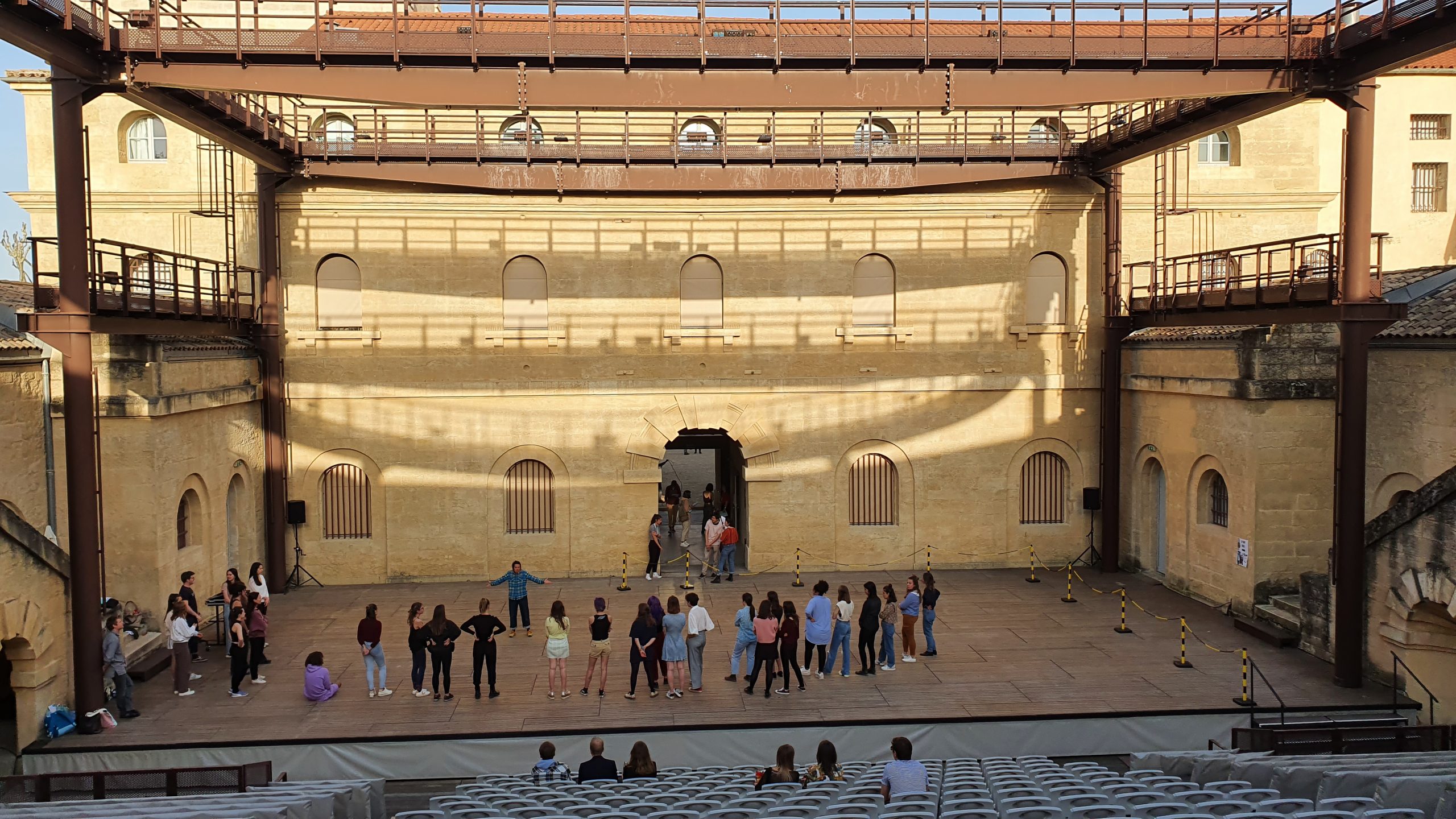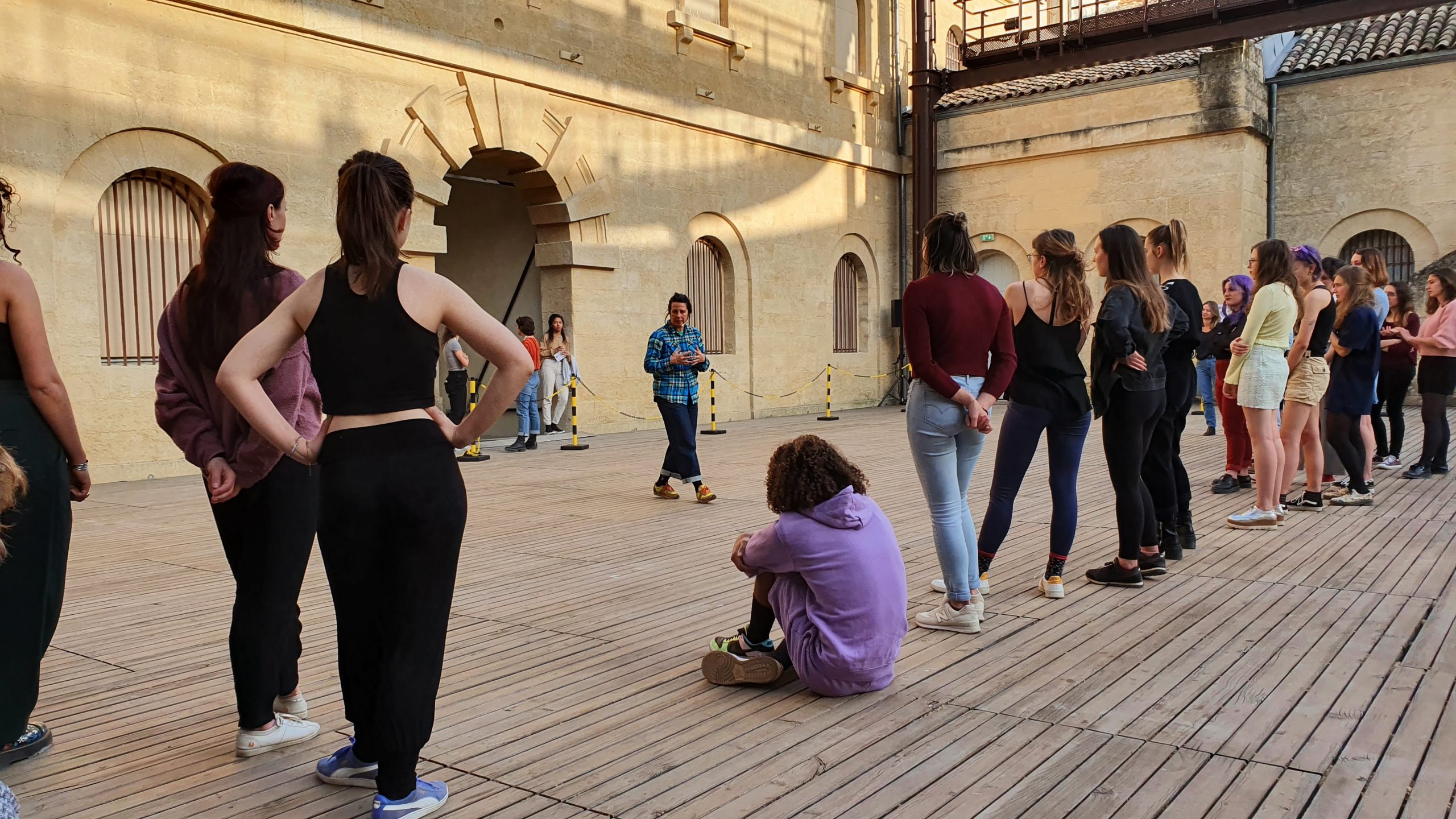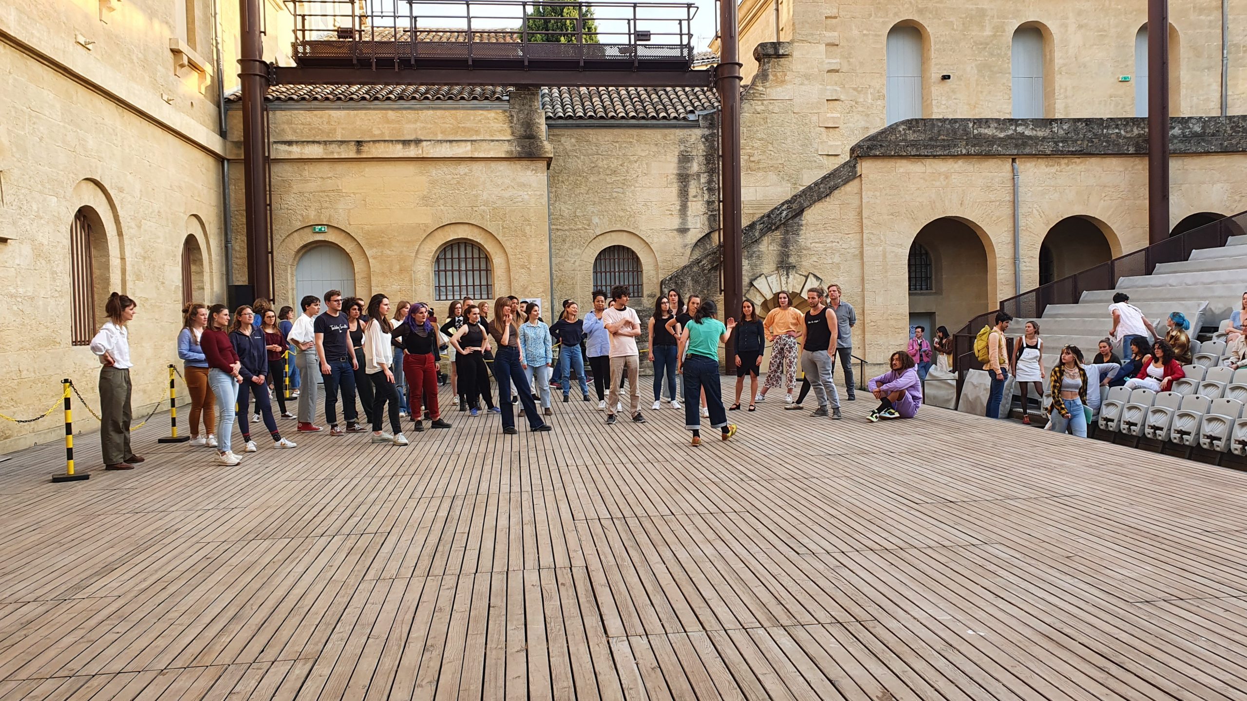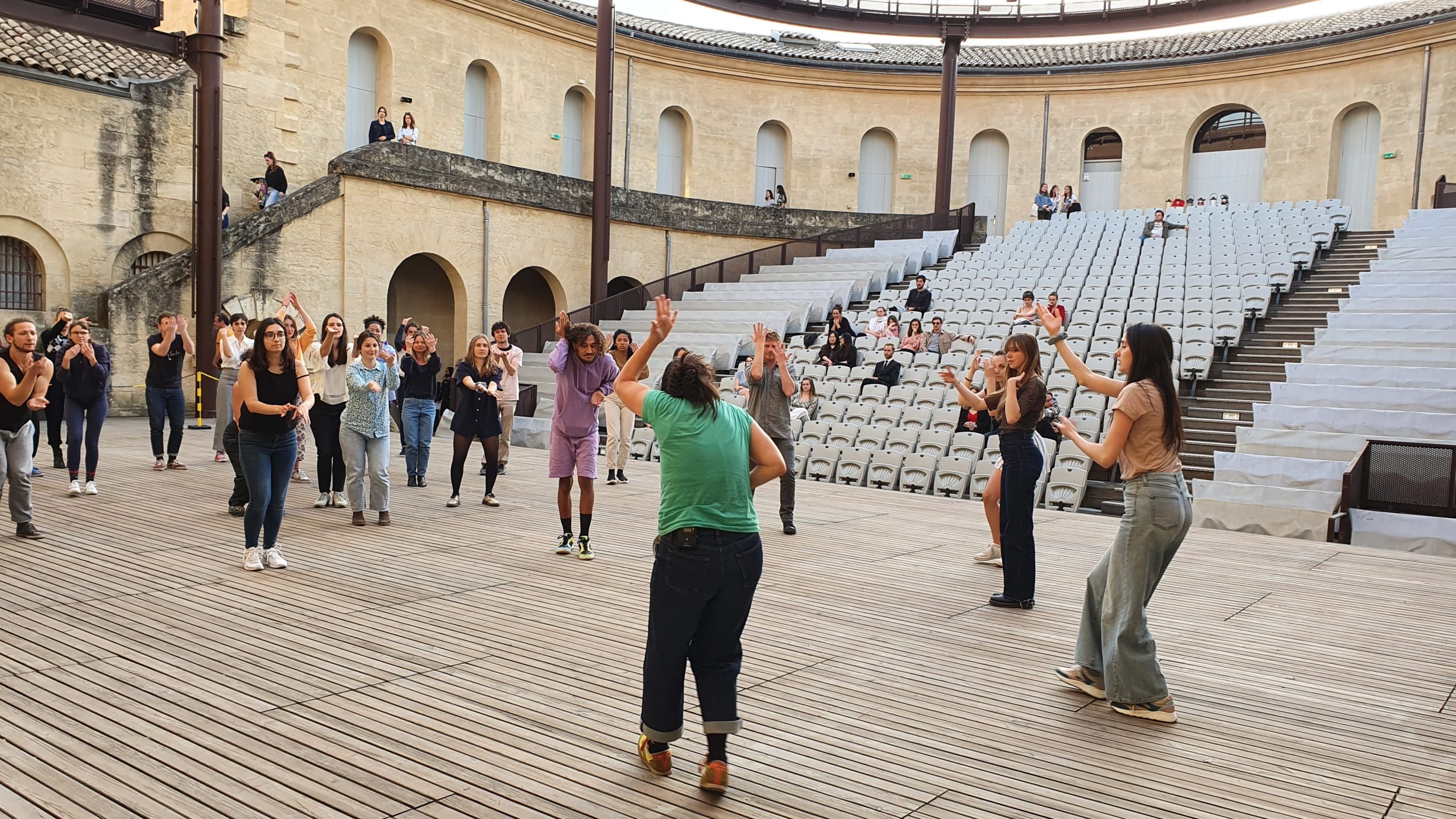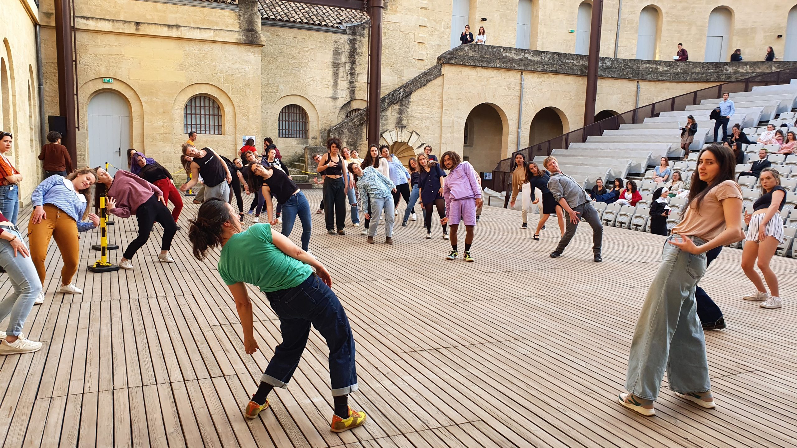 Atelier danse très suivi par les étudiants, emmené par Anne Lopez sur le plateau du Théâtre de l’Agora le 14 avril 2022.